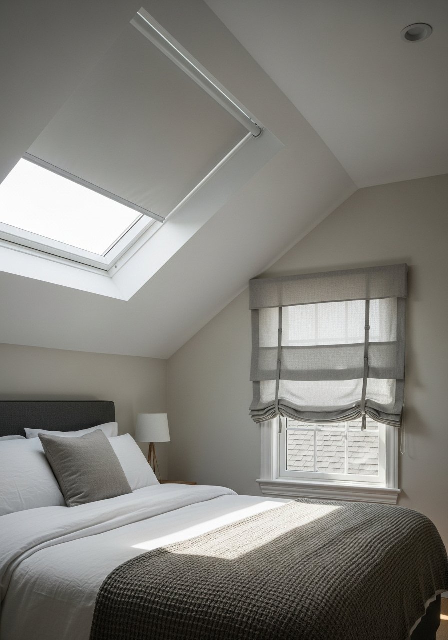 Skylight + Layered Window Treatments for Natural Light — Bright Attic Bedroom