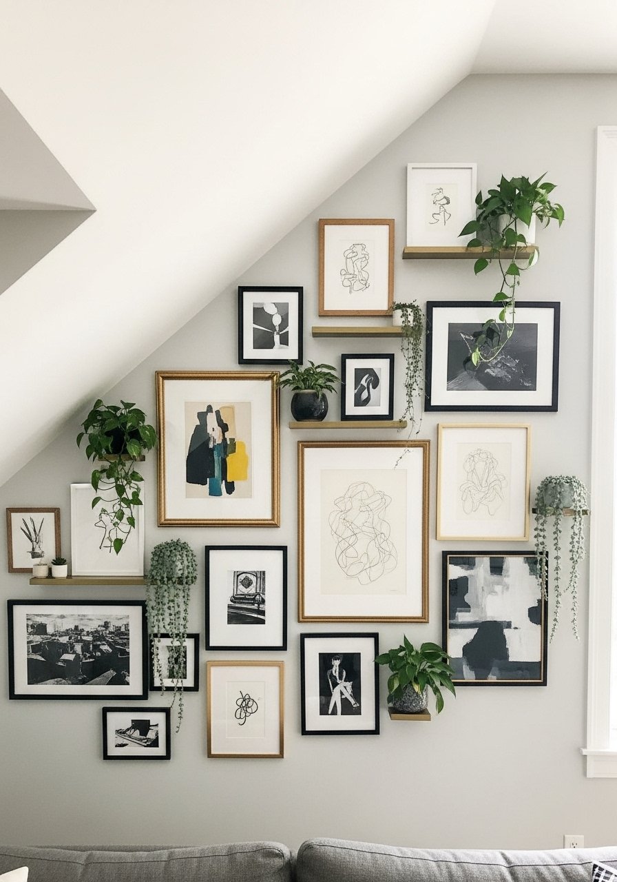 Gallery Wall That Follows the Slope — Boho Eclectic Accent