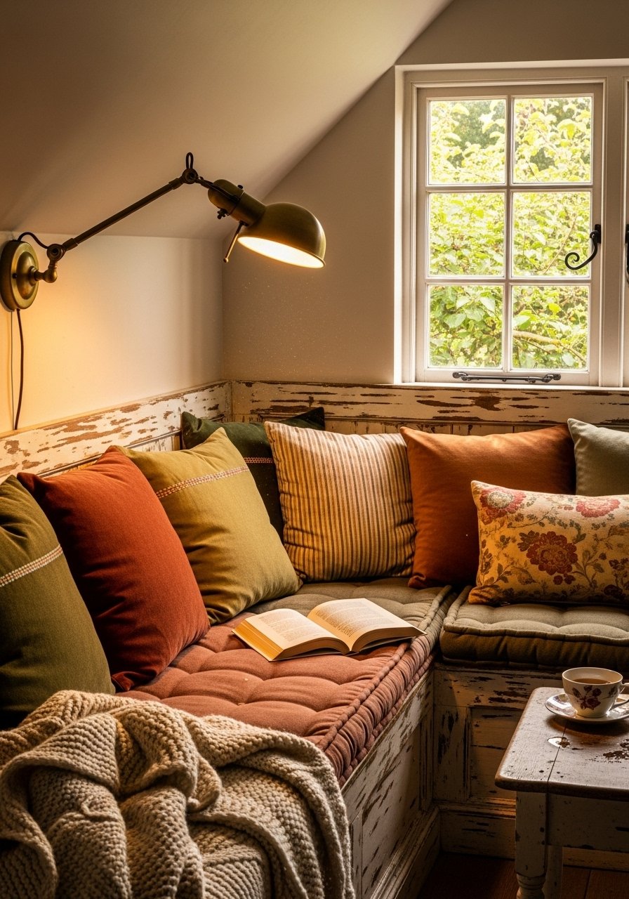 Cozy Reading Nook Under Eaves With Layered Textiles