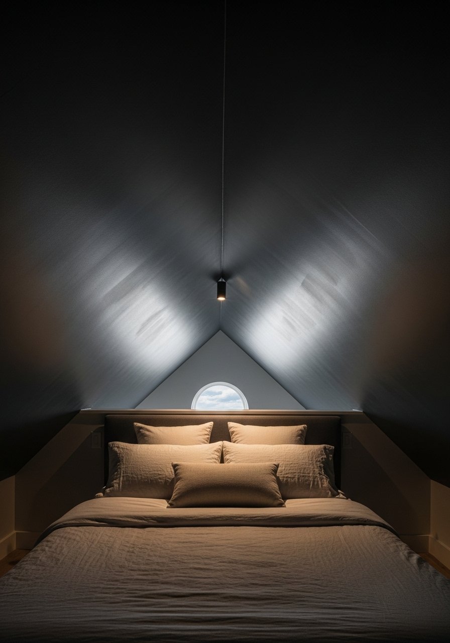 I painted my attic slope a deep charcoal and kept the walls warm white. The darker ceiling creates a cocooning effect that actually makes the space feel intentional—not cramped. Works best when paired with a large mirror like this 36-inch round mirror to bounce light. Mistake: choosing a dark paint with too-flat finish—use eggshell for subtle reflection.