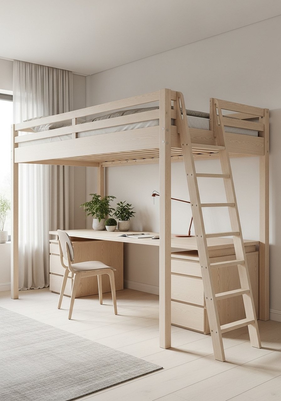 Scandinavian Minimalist Loft Bed for Small Attic Room Ideas Bedrooms