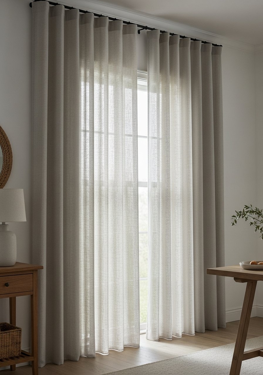 - Linen blend curtains, 84-inch (~$30-50 per panel)