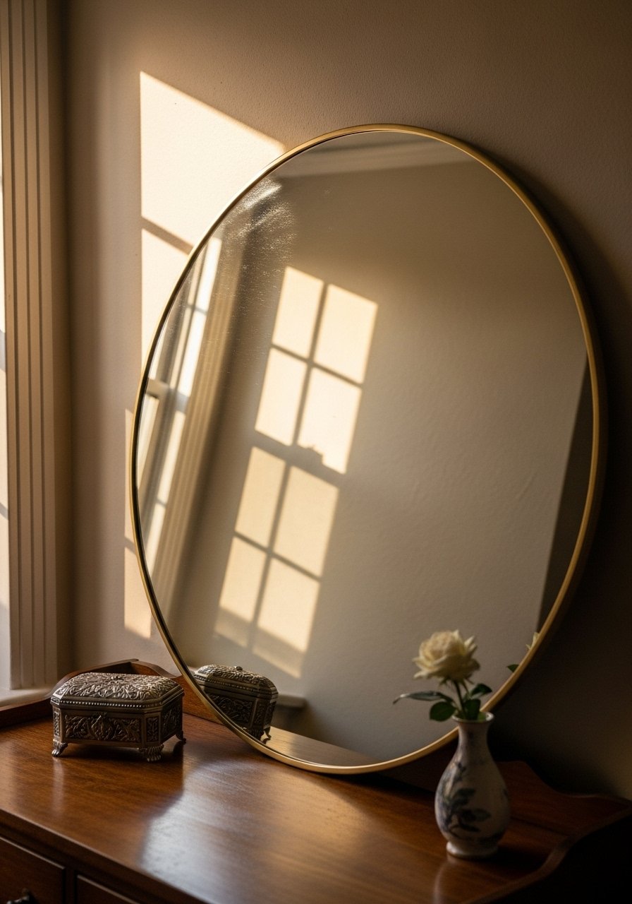 I leaned a 36-inch round mirror opposite a window. It opens the room and works better than whitening paint alone. Tip: angle it to catch natural light. Don’t over-decorate the reflected wall—keep it calm.