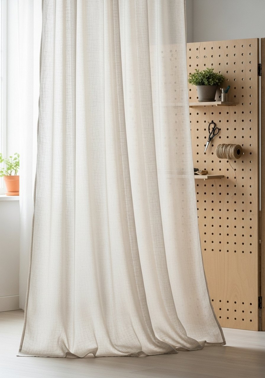 For sound dampening and flexibility, I paired a thin curtain with a pegboard frame. It reduces noise and still looks styled. Use heavier fabric if sound privacy is crucial. Mistake: ignoring bottom gaps—add a rug to finish the edge.