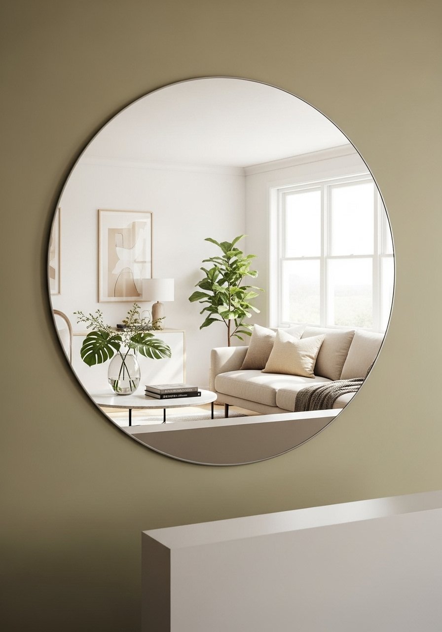 - Large round mirror 36 inch (~$80-120)