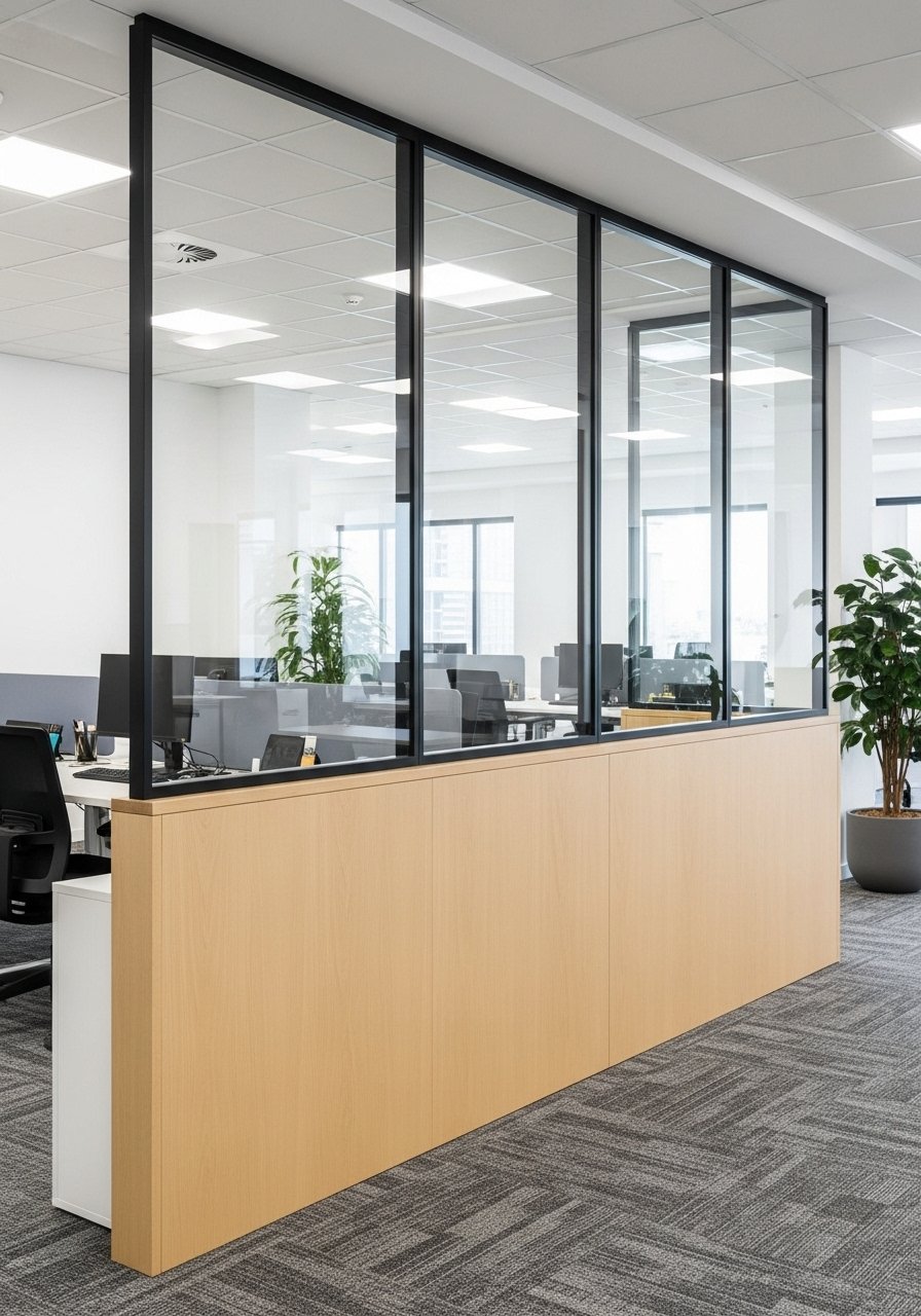Glass-and-Frame Half Wall for Industrial Feel (Industrial/Modern)