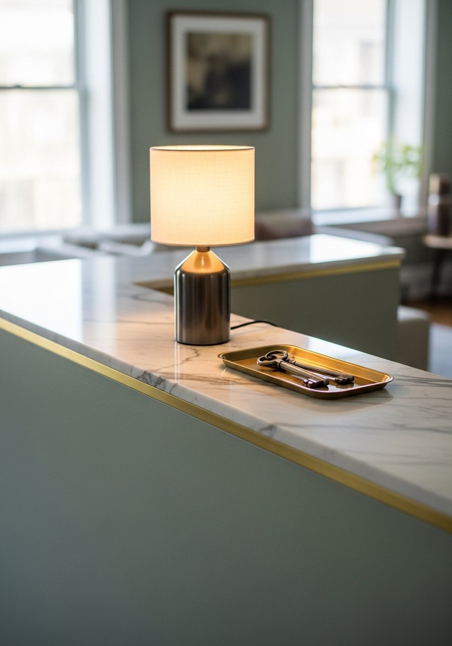I capped my half wall with a thin marble slab and added brass trim. It reads luxe without being over the top. Pair with a small tray for keys and a brass sconce. Mistake: mixing too many finishes—keep metals to two complementary tones.