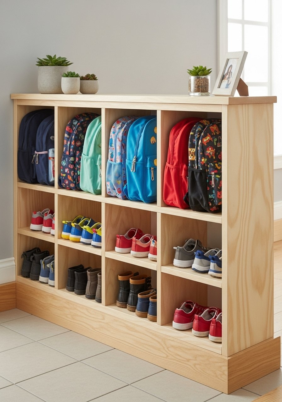 Open Cubbies and Shoe Storage in Half Wall (Family-Friendly)
