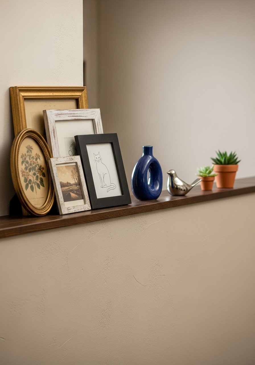 I used a picture ledge atop the half wall to rotate art and photos. It feels personal and intentional. Mix frames from thrift finds with new mats. Avoid an overly dense gallery—leave eye lines clear.