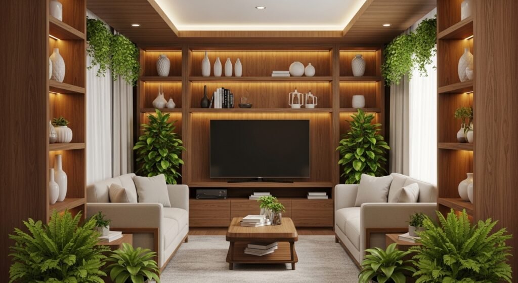 Okay, real talk – start by picking 2-3 ideas that match your room’s light and vibe, like green accents if you’ve got north-facing windows, ’cause they warm things up without overwhelming. Layer textures gradually, maybe wooden slats first then plants, so it doesn’t feel “done” overnight – I learned that when my first try looked like a stage set. Hunt thrift stores or Facebook Marketplace for 80% of pieces; spray paint unifies everything cheaply, and always test arrangements with painter’s tape before committing. Oh, and rotate seasonally – keeps it fresh without buying more.