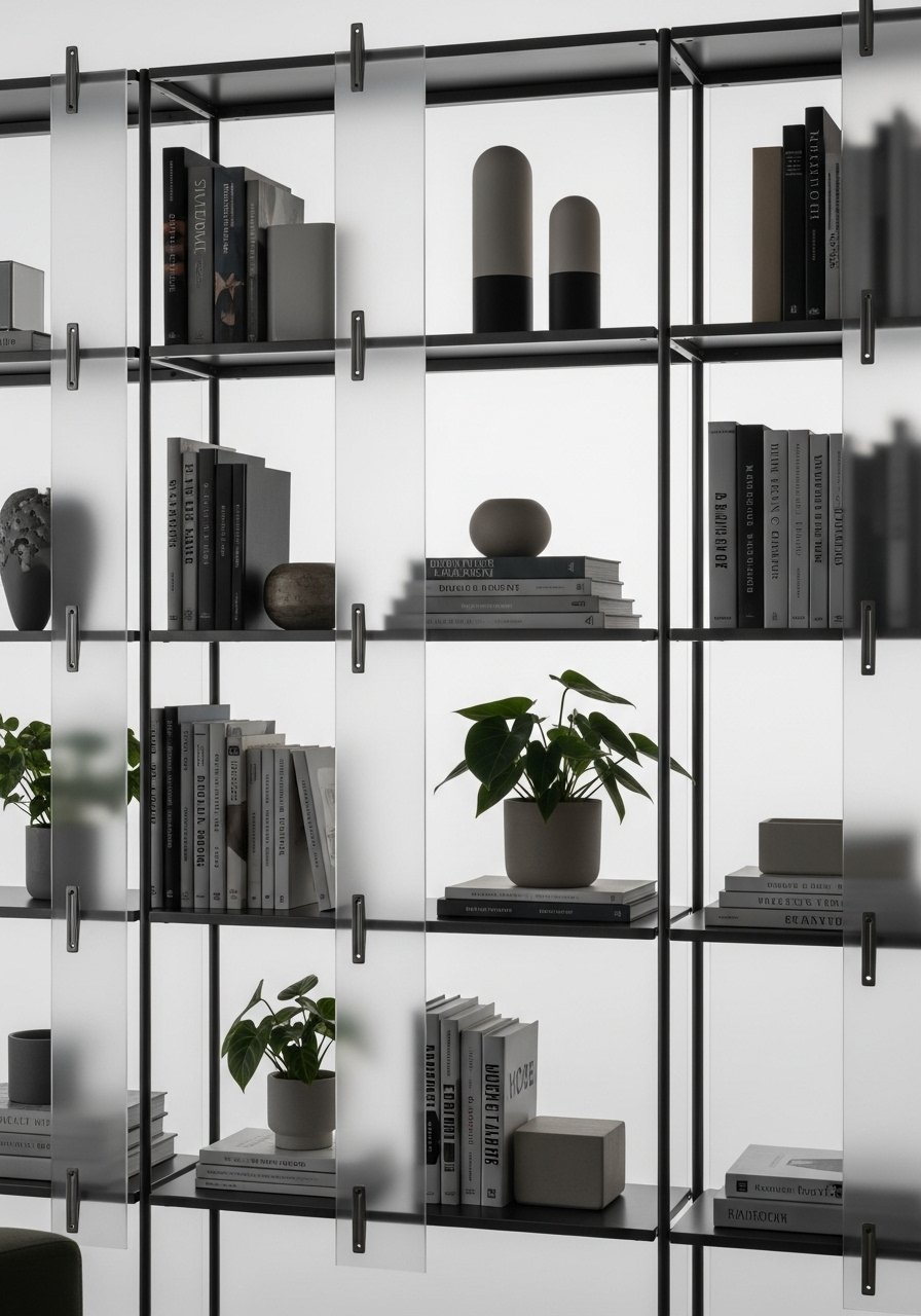 I clipped frosted acrylic sheets into an IKEA bookcase frame to obscure sightlines but keep daylight passing through. It feels modern and airy. Use thin black trim to frame the panels for a custom look. Styling tip: pair with warm LED strips inside the shelves. Mistake: over-opaque panels will block too much light—pick 50-60% translucency. Link: frosted acrylic sheet 24×36.