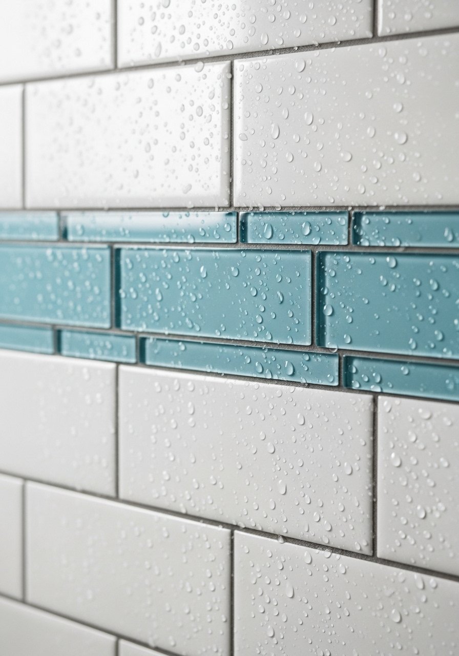 If indigo feels too heavy, a horizontal light-blue tile band softens the room. I used a 4–6 inch band at eye level inside the shower. It reads like a breath of air against dark grout and indigo walls. I recommend peel-and-stick options for renters (peel-and-stick navy subway tile). Common mistake: using too many tile colors; stick to 1 bold + 1 light.