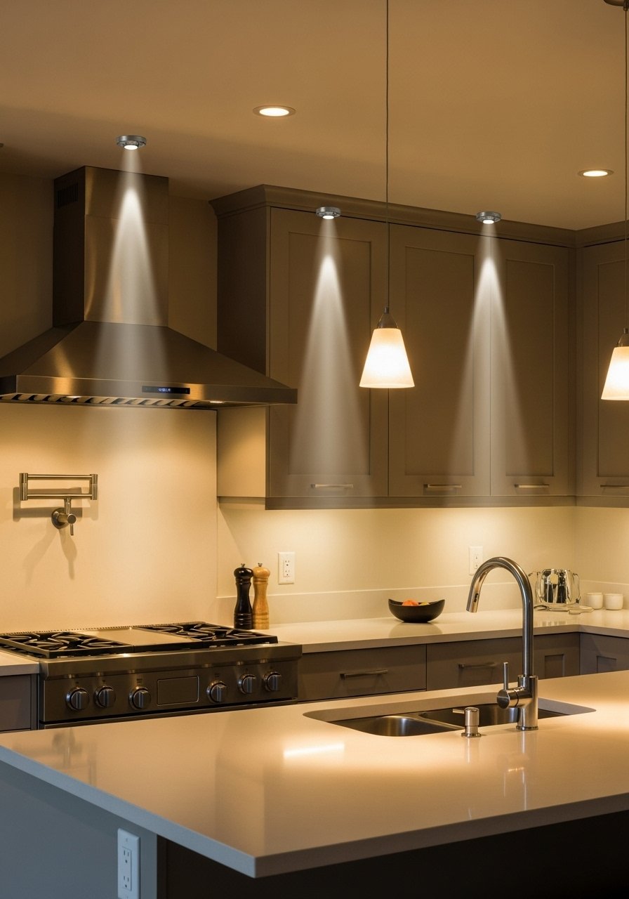Start with one swap—replace a bulky fixture with recessed lights or add under-cabinet LEDs. I began with a single recessed kit and an under-cabinet strip and the room felt wider and calmer. Which corner of your kitchen would you light up first?