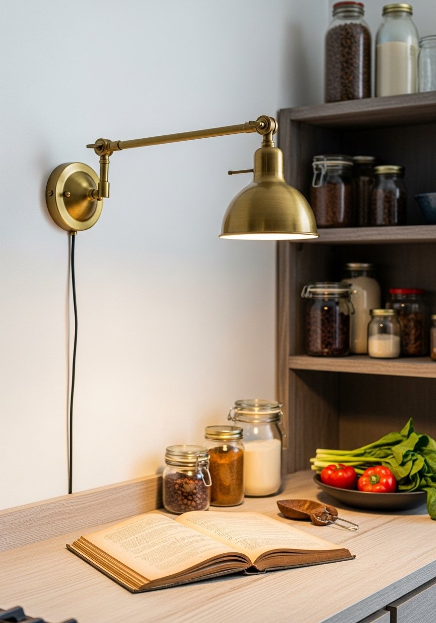 A swing-arm sconce gives me directed light without ceiling work. It’s great by a coffee station. I used brass swing-arm sconces. Keep arms foldable so they don’t block sightlines. Mistake: choosing a heavy look—pick slim arms for low ceilings.