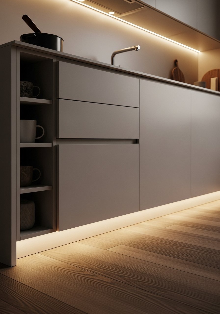Integrated Toe-Kick Lighting for Subtle Ambience – Cozy Contemporary