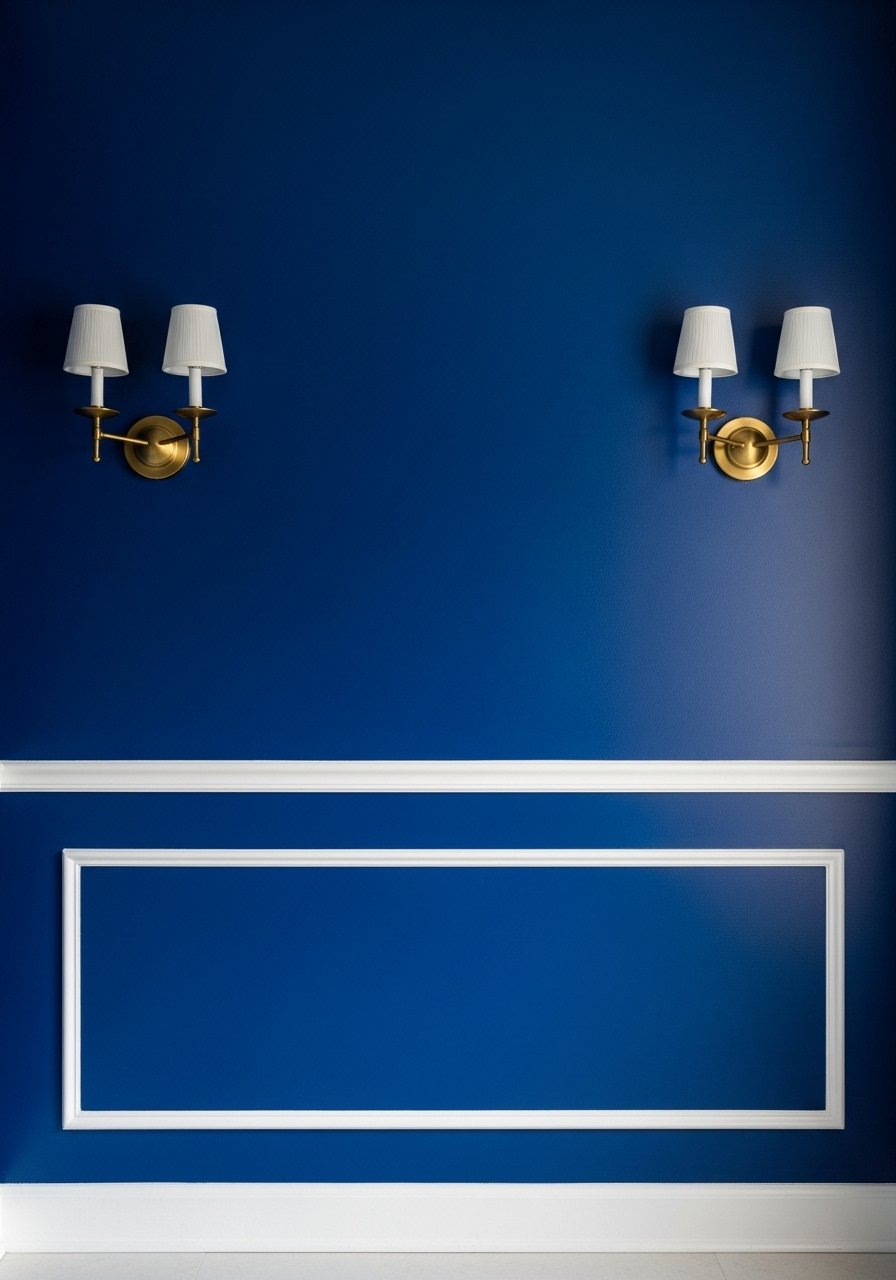 Painting lower walls royal blue with white above creates a grounded, layered look that still reads airy because of the bright upper walls. I used satin finish below for scuff resistance. Tip: add a white or light oak shelf to separate zones. Mistake: using glossy paint top-to-bottom—keep royal blue low to avoid overwhelm.