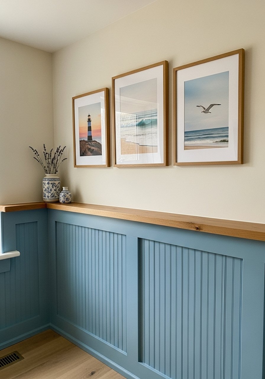 Adding beadboard painted in a light blue gave my tiny WC instant character without closing it in. I kept the top third of the wall white to preserve vertical space. I added white oak floating shelves for hand towels and a small plant. Styling tip: keep wall decor minimal—one framed print feels complete. Mistake: beadboard in dark colors—it highlights shadows and makes the room feel narrower.