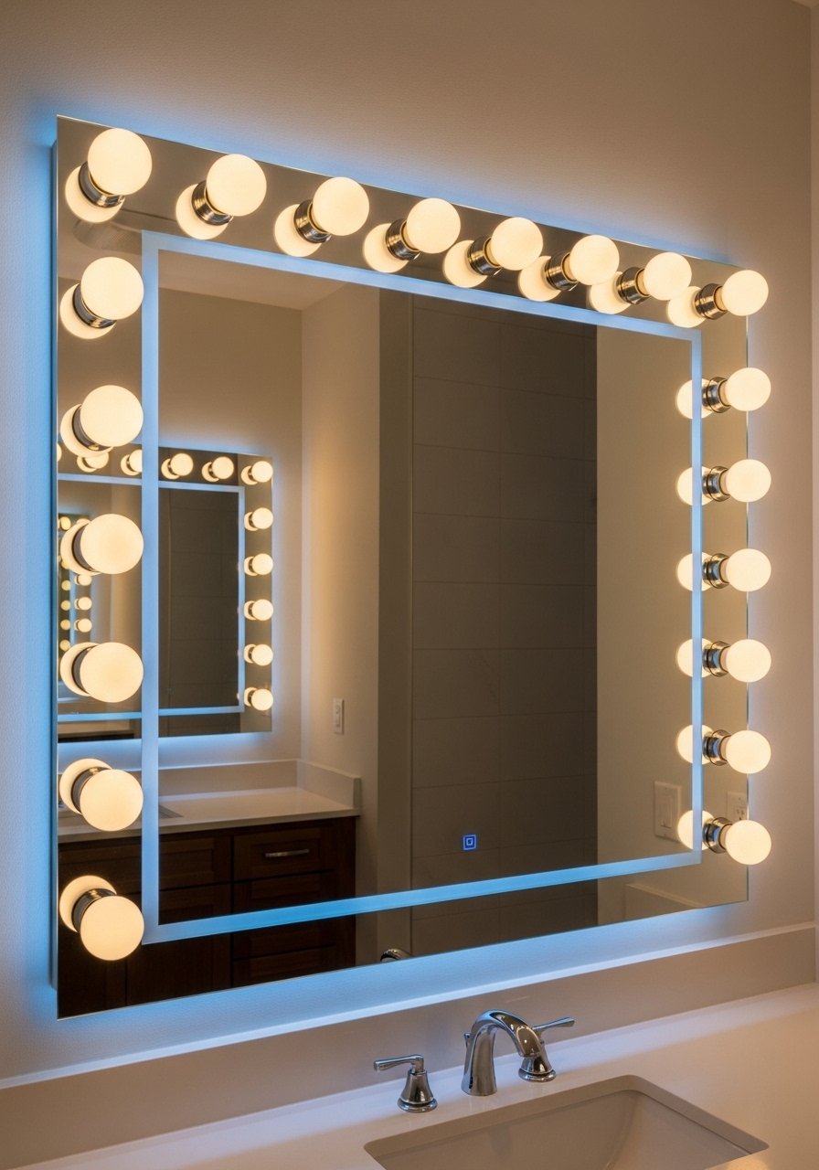 - Layer lighting: Combine warm LEDs for tasks with a subtle blue LED accent strip behind mirrors.