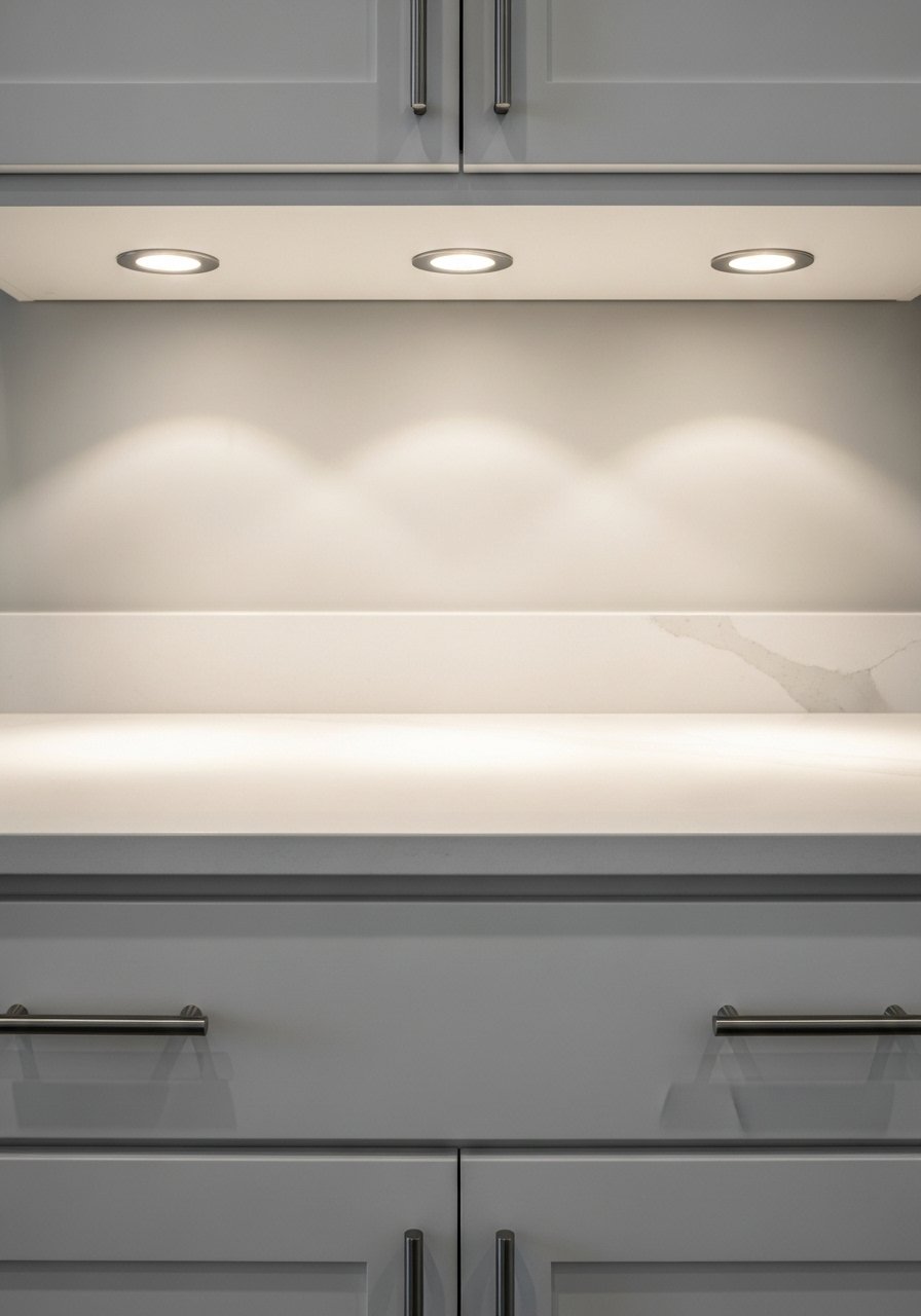 Smart Lighting Scenes to Match Cabinet Finishes (Under-Covered Angle)