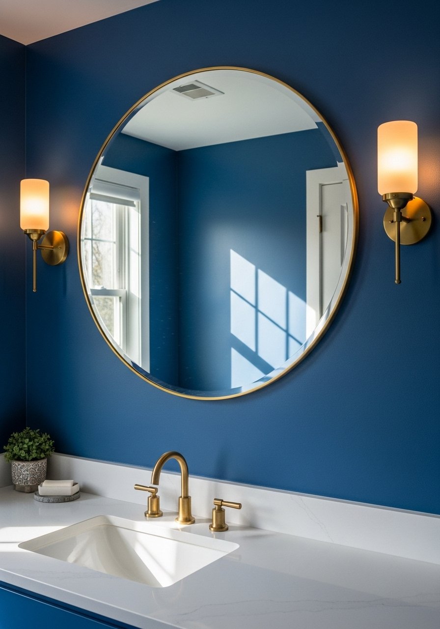 Layered Mirrors and Sconces Over Royal Blue Walls (Reflective Light)