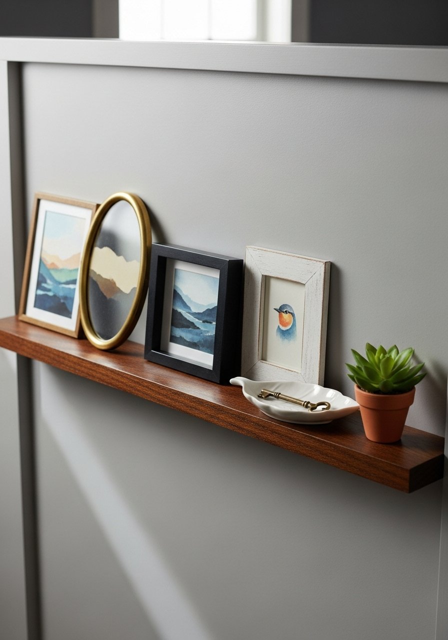 I added a slim gallery ledge across the top of a low divider. It’s a visual anchor and a perfect spot for a magnetic key tray and incoming mail. The result is a curated mini mudroom that feels personal. Tip: use only 3–5 frames and one clutter-catching bowl. Don’t hang too many small pieces—this creates visual noise.