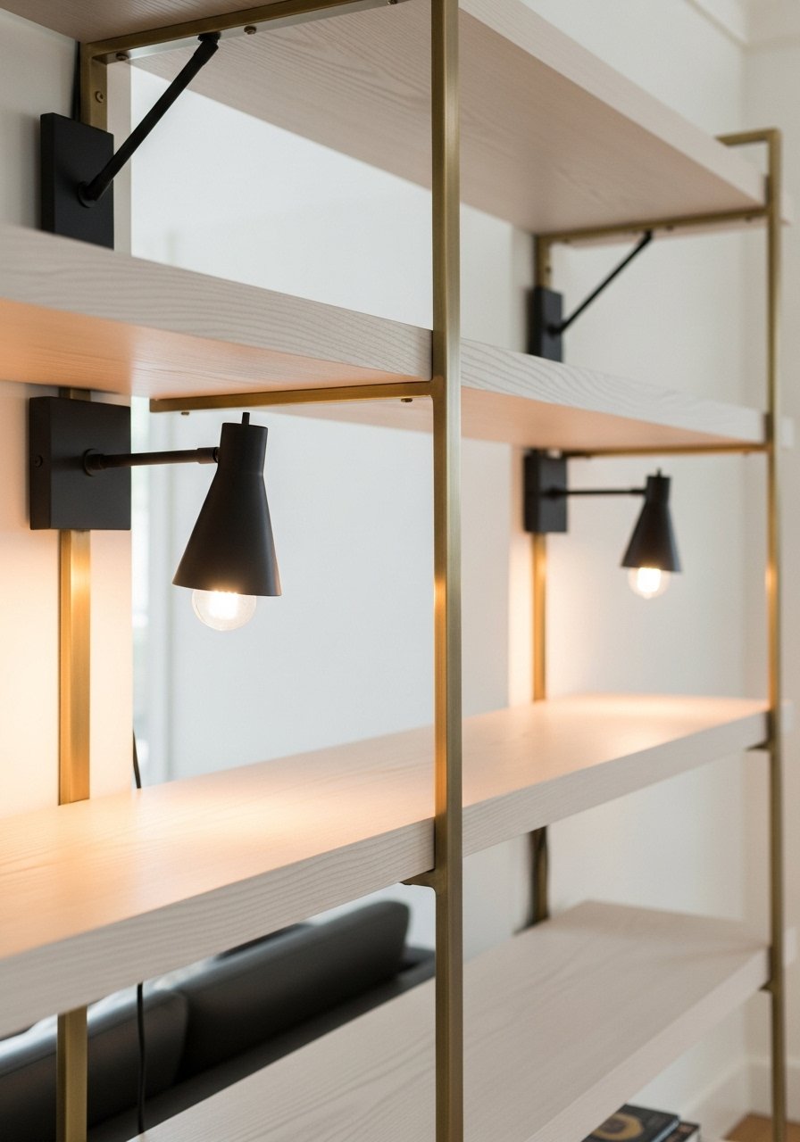 I mixed warm brass hooks with matte black shelf brackets and white oak shelves. The contrast reads current for 2025. Use a consistent metal for high-touch items like hooks to avoid visual confusion. Mistake: cluttering shelves with too many metallic accents—balance with wood and textiles.